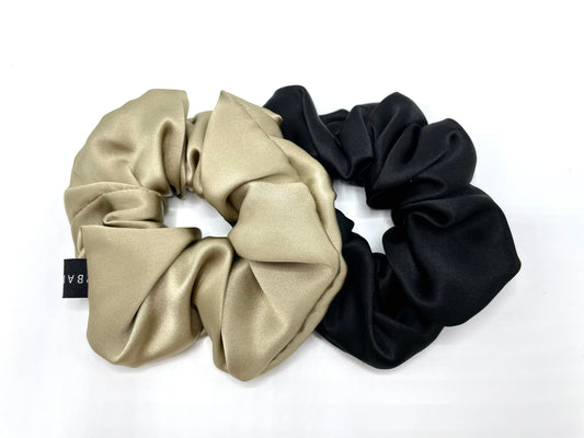 Mulberry Silk scrunchie - BLACK/BEIGE - 2-PACK