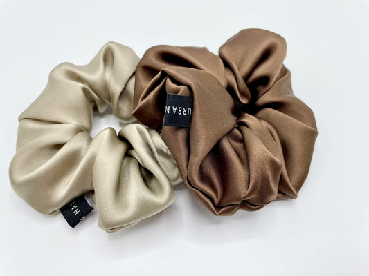 Mulberry Silk Scrunchies - BEIGE/BROWN - 2-PACK